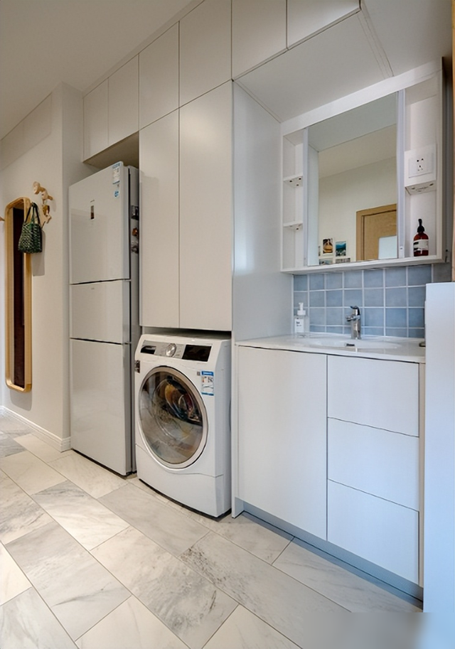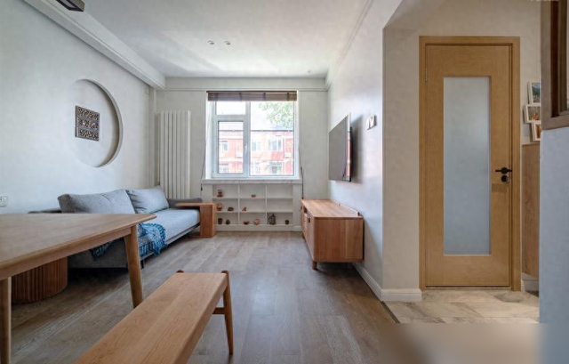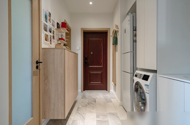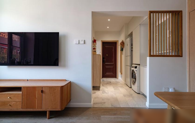 这套56㎡的改造真是小户型的教科书!年轻人装修真懂“抠细节”,半高鞋柜底部留空放拖鞋,过道塞下洗衣机和冰箱,把犄角旮旯都盘活了。现在好多老破小户型差的房子,其实学他家拆墙改格局就能逆袭,两居改一居换个大客厅,干湿分离的卫生间还外移了洗漱台,过日子反而更顺手了。