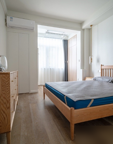 现在很多人装修总爱堆砌元素,这套房反而像“做减法”的典范。无主灯设计不压层高,迷你床头柜配木格栅床,连地砖都选水墨纹显空间大。看完真想把自己家也翻新一遍,原来56㎡也能过出诗意的烟火气~
